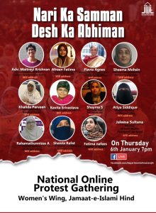 नई दिल्ली:- जमाअत इस्लामी हिन्द के महिला विभाग ने “नारी का सम्मान, देश का अभिमान” शीर्षक के तहत एक “नेशनल ऑनलाइन प्रोटेस्ट गैदरिंग” का आयोजन किया । विभिन्न क्षेत्रों से जुड़े सामाजिक कार्यकर्ता, वकील, छात्र और राजनीतिक नेताओं ने ‘सुल्ली डील्स’ और ‘बुली बाई’ ‘जैसे ऐप’ के नाम पर फैलाई जा रही नफरत, यौन हिंसा और कुप्रथा की राजनीति को पूरी तरह से खारिज कर दिया। ये बातें जमाअत इस्लामी हिन्द के महिला विभाग की सह-सचिव मोहतरमा रहमतुन्निसा ने बतायीं। उन सभी ने उन महिलाओं के प्रति अपनी एकजुटता दोहराई, जिन्हें मुस्लिम महिलाओं की ‘नीलामी’ की निंदनीय और आपराधिक गतिविधि में निशाना बनाया गया है, विशेष रूप से उन्हें जो सार्वजनिक जीवन में सक्रिय रूप से भाग ले रही पत्रकार, कार्यकर्ता, आंदोलन के नेता और शिक्षाविद हैं।