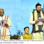 *नई दिल्ली, 17 अक्तूबर* – प्रधानमंत्री श्री नरेंद्र मोदी की उपस्थिति में आज हरियाणा के राज्यपाल श्री बंडारू दत्तात्रेय ने श्री नायब सिंह सैनी को लगातार दूसरी बार हरियाणा के मुख्यमंत्री के तौर पर पद एवं गोपनीयता की शपथ दिलाई। इस अवसर पर 11 कैबिनेट मंत्रियों और 2 राज्य मंत्रियों ने भी पद एवं गोपनीयता की शपथ ली।