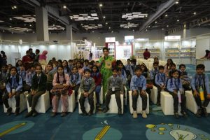 In the Children’s Pavilion (Hall No. 3), back-to-back informative and interactive sessions saw enthusiastic participation from students throughout the day. The first event for the day was a storytelling session with Dr. Anita Bhatnagar Jain, where, through her stories, she talked about the importance of environment and wildlife conservation.