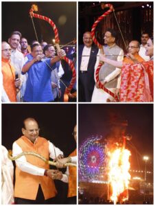 दिल्ली के चीफ मिनिस्टर अरविंद केजरीवाल, बॉलीवुड स्टार कंगना रनौत द्वारा तीर चला कर रावण, कुंभकरण , मेघनाथ के पुतलो का दहन किया।